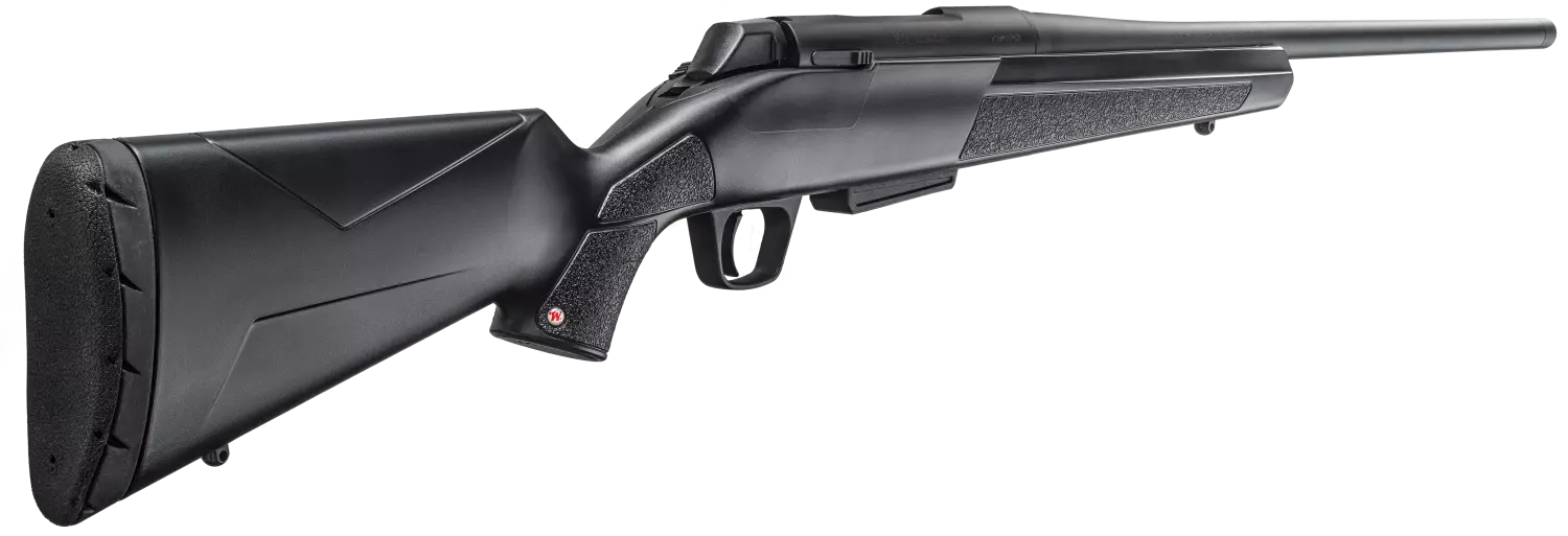 Links utgaven av XPR Composite. Winchester XPR produseres ved Brownings fabrikk i Vianna, Portugal. Den har tekniske løsninger og materialvalg som er uslåelige i pris. Rifla har 3 låseklakker, sikring med boltutløser, suverent avtrekk (1,2kg), rekylklakk i stål og lyddempergjenger MF14x1,0 i Browning gjengestandard (6G). Leveres med presis button-riflet løp i 2 låskasselengder.